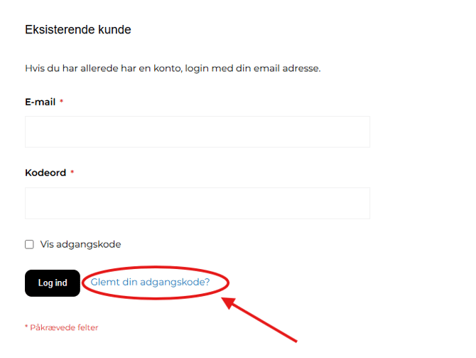 Hvis du havde en konto på vores tidligere webshop, skal du nulstille din adgangskode, før du logger ind på den nye webshop første gang, da din gamle adgangskode ikke virker her.